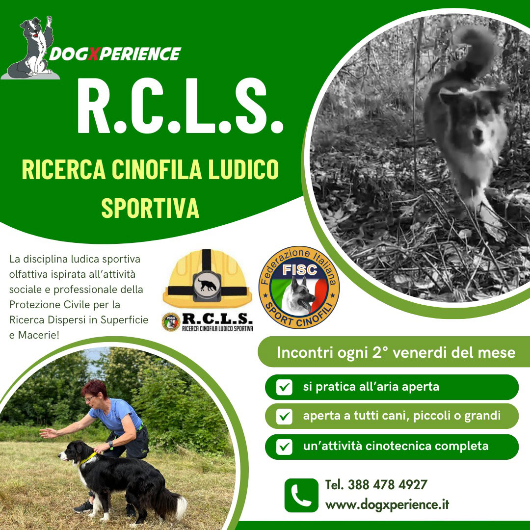 La RCLS acronimo per Ricerca Cinofila Ludico Sportivo – è una disciplina ludica sportiva olfattiva ispirata all’attività sociale e professionale della Protezione Civile per la Ricerca Dispersi in Superficie e Macerie!